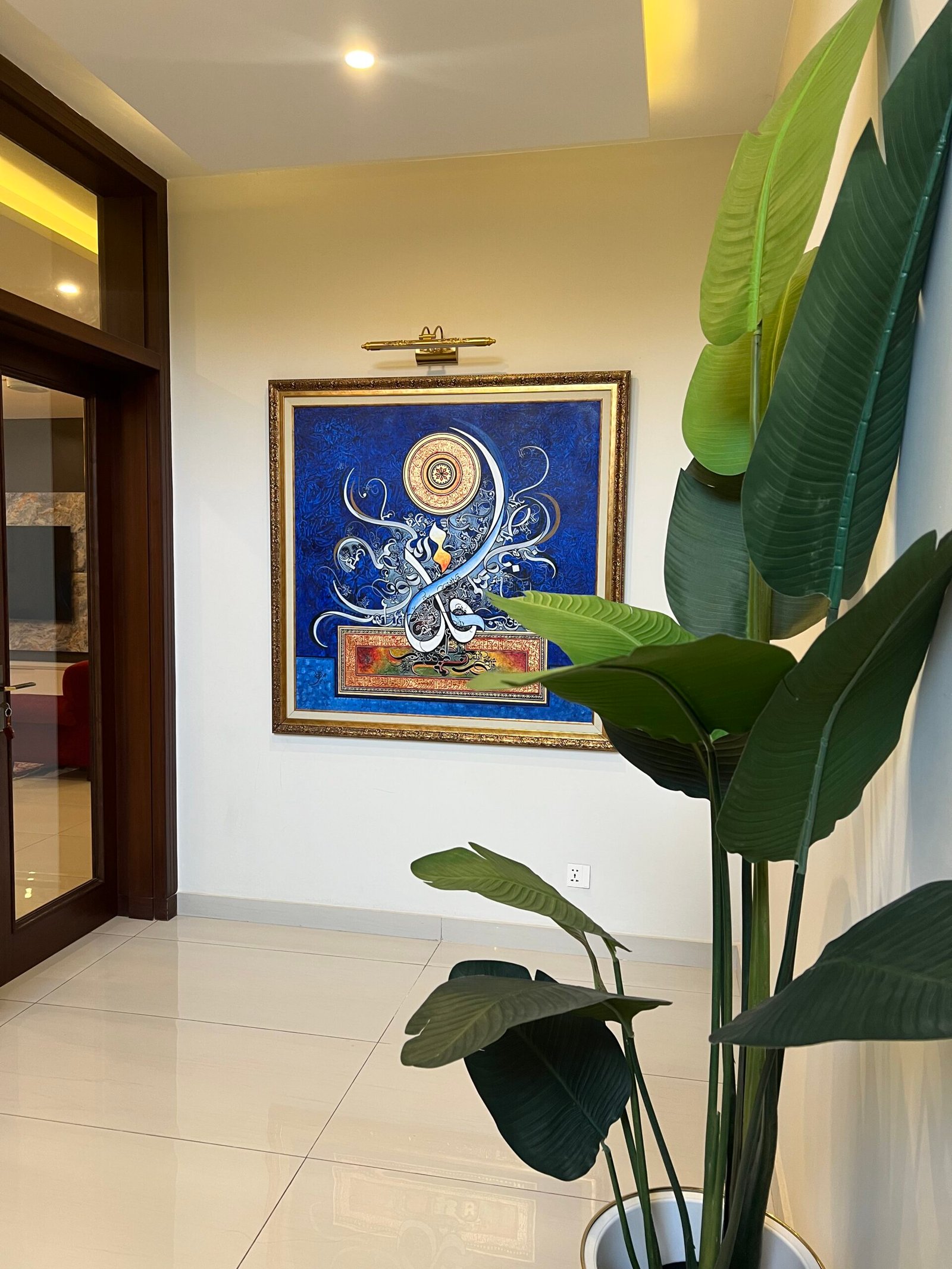 Depth of Oceans is a modern Islamic calligraphy painting created on a deep dark blue background, inspired…